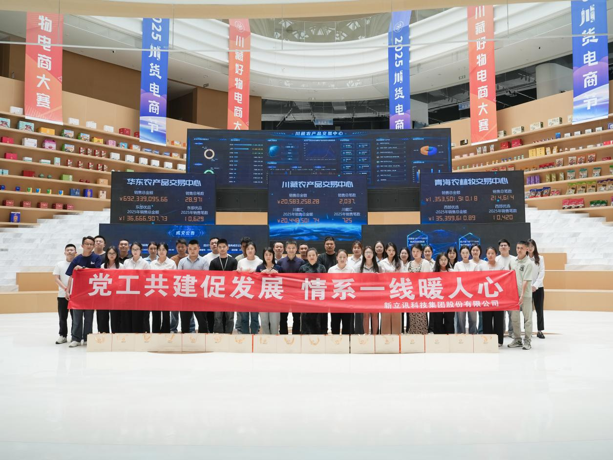 在喜迎中國共產(chǎn)黨成立104周年之際,新立訊科技集團(tuán)黨支部聯(lián)合集團(tuán)工會于2025年6月27日開展"黨工共建促發(fā)展 情系一線暖人心"主題慰問活動。公司黨員代表及工會主席王宗蘭前往川藏農(nóng)產(chǎn)品交易中心,為協(xié)辦四川省“2025川貨電商節(jié)”川藏好物電商大賽堅守崗位的一線員工送去慰問品和深切關(guān)懷。