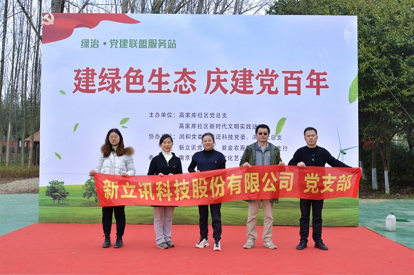 2021年3月12日,在高家庫社區黨總支的帶領下,新立訊與潤和黨委、誠邁科技黨委、滿運黨總支、紫金農商銀行鐵心橋支行四家共建單位黨員代表共同開展了“建綠色生態,慶建黨百年”主題黨日活動。