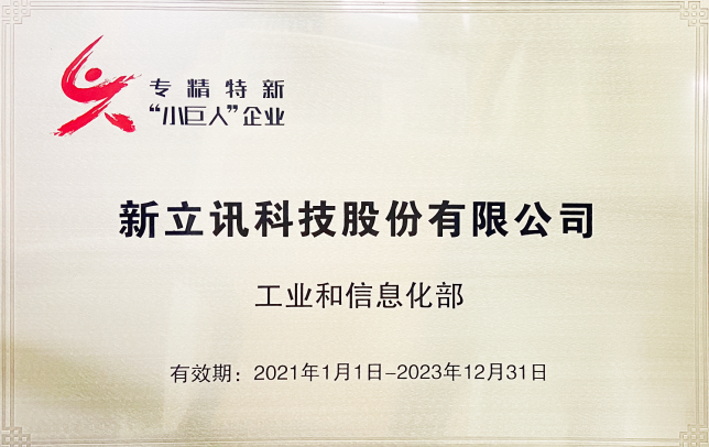 近日,新立訊獲工業(yè)和信息化部專精特新“小巨人”企業(yè)授牌(全國(guó)第二批)。